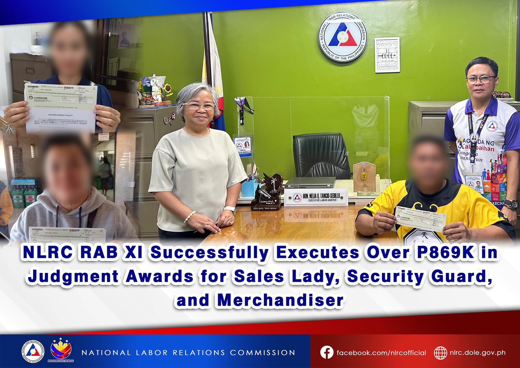 Apr 29 NLRC RAB Xl Successfully Executes Over P869K in Judgment Awards for Sales Lady, Security Guard, and Merchandiser Read More