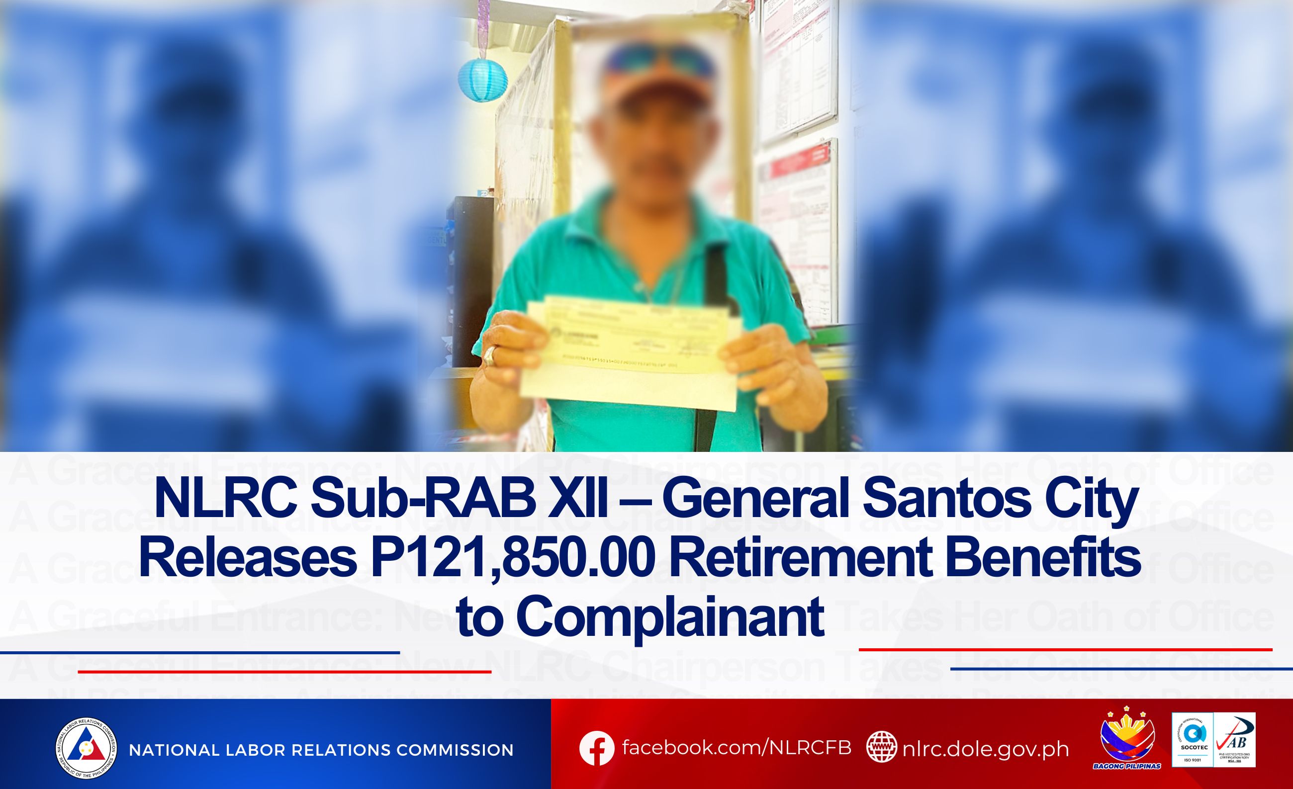 NLRC Sub-RAB XII – General Santos City Releases P121,850.00 Retirement Benefits to Complainant