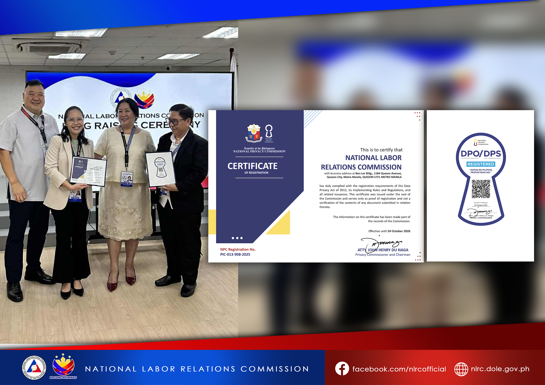 Nov 11 NLRC Unveils NPC Certification and Seal for Data Protection Office and System During Flag Ceremony Read More