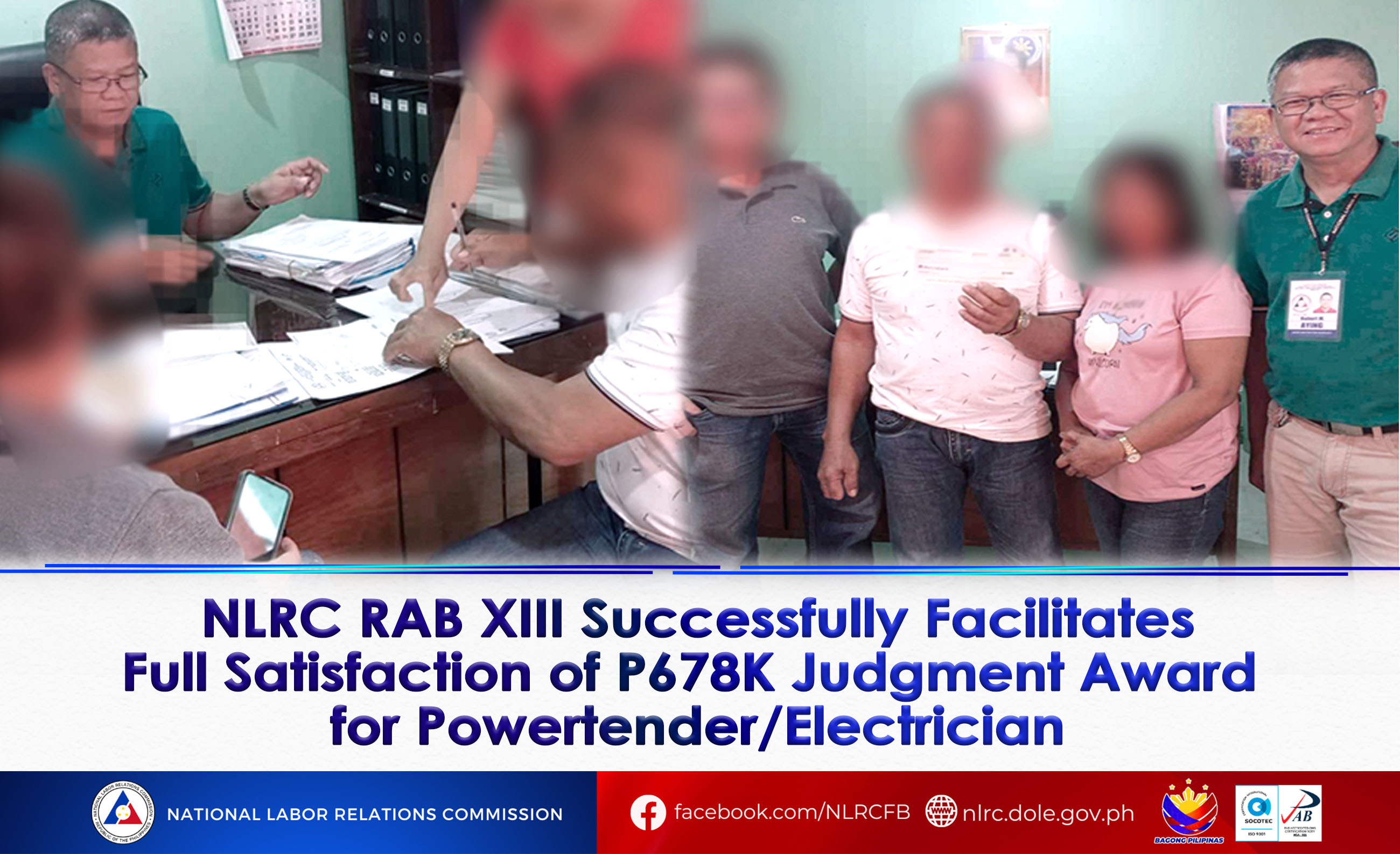 NLRC RAB XIII Successfully Facilitates Full Satisfaction of P678K Judgment Award for Powertender/Electrician