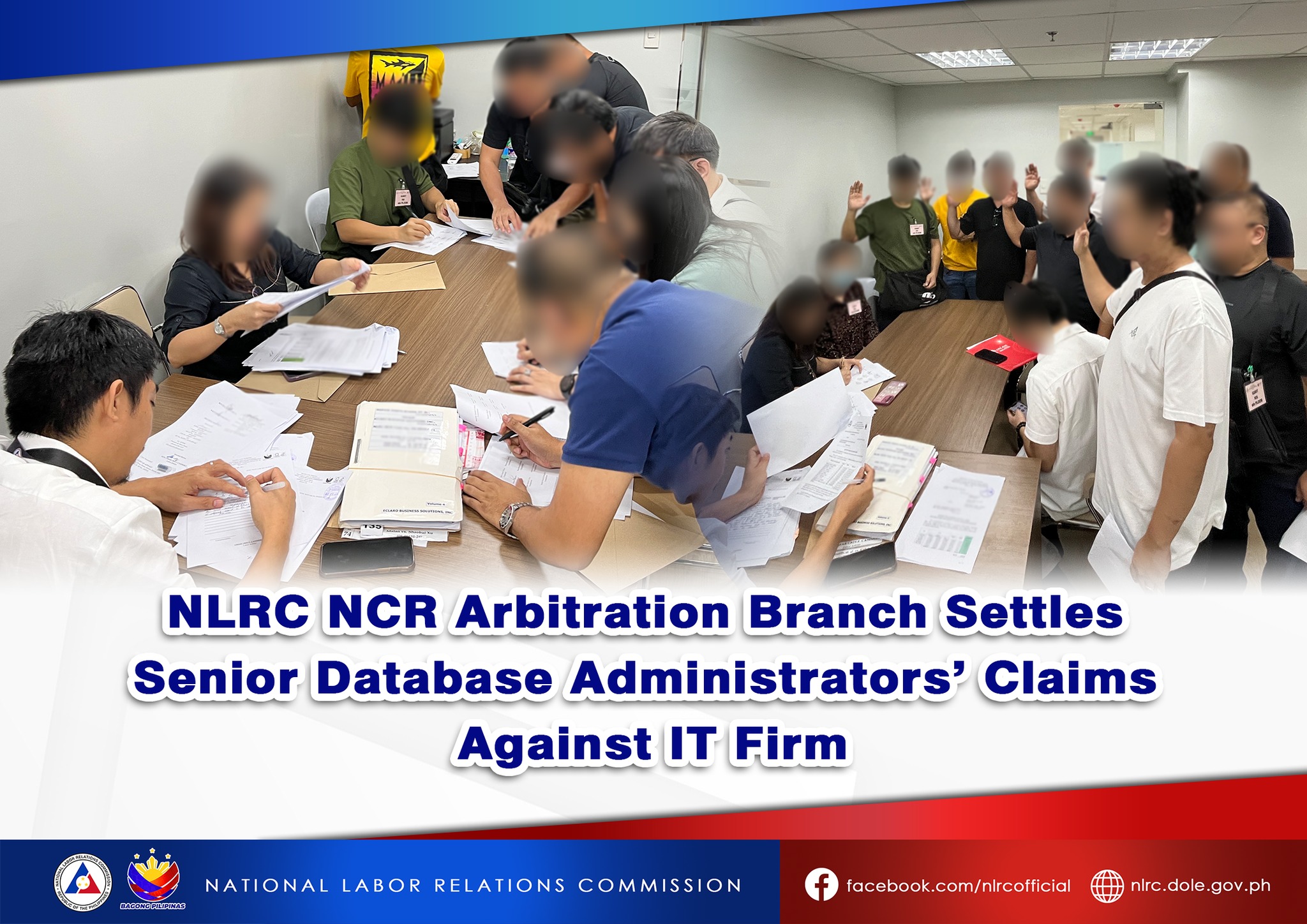 QUEZON CITY- The National Labor Relations Commission (NLRC) National Capital Region (NCR) Arbitration Branch successfully mediated the settlement of claims filed by 10 senior database administrators against a leading IT and Business Consulting Firm. Totaling ?19,273,291.90, the settlement addressed various monetary claims stemming from the employer-employee relationship.