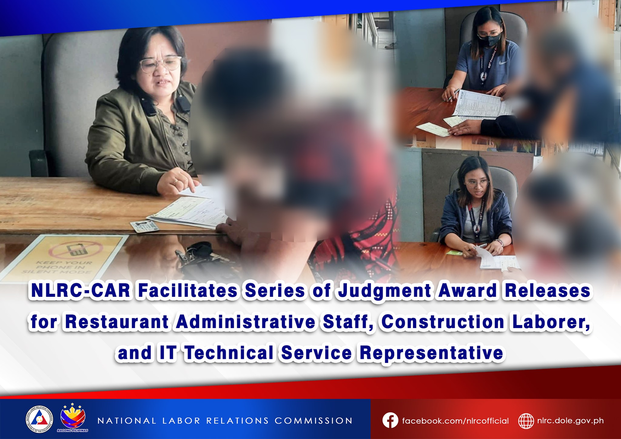 NLRC-CAR Facilitates Series of Judgment Award Releases for Restaurant Administrative Staff, Construction Laborer, and IT Technical Service Representative
