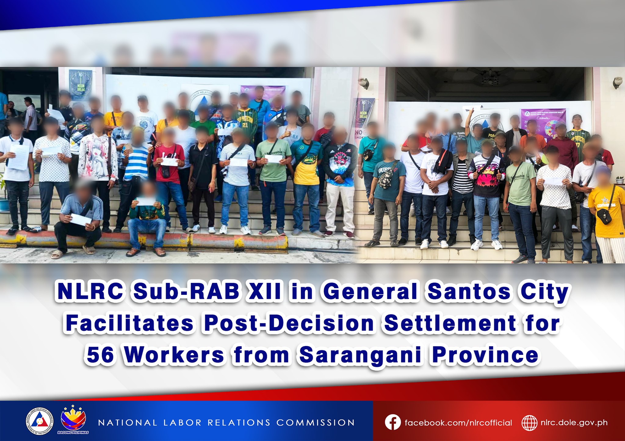 General Santos City – The National Labor Relations Commission (NLRC) Sub-Regional Arbitration Branch (Sub-RAB) 12 in General Santos City successfully facilitated a post-decision settlement of labor disputes involving 56 workers from Sarangani Province against a manpower agency, with a total monetary settlement amounting to ?1.3 million.