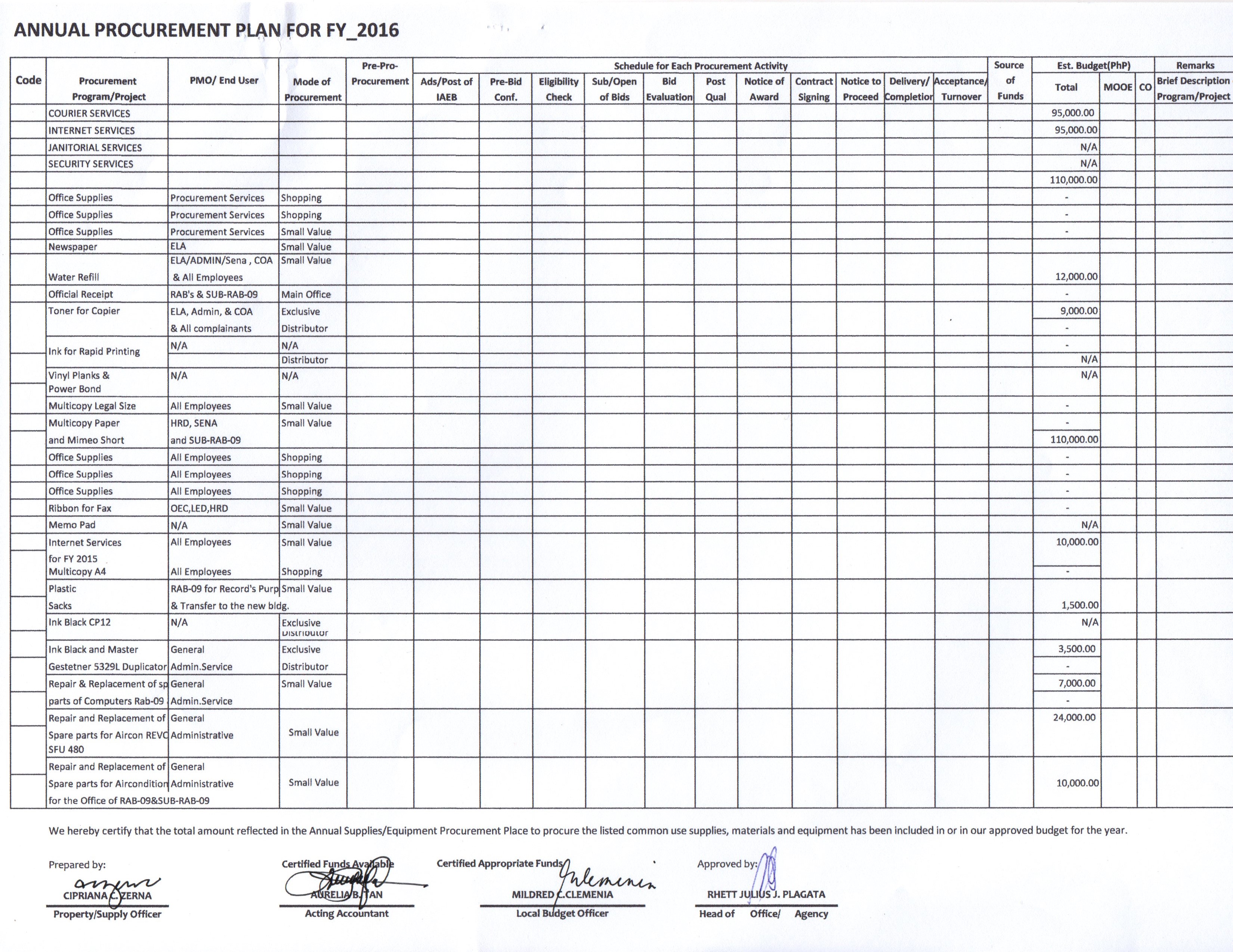 - Procurement of Janitorial Services for FY 2017 - Invitation to Bid
